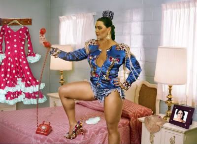 Gracias a Julio César, un lector y amigo del blog les traigo una evidencia fotográfica que haría que Grissom, el de CSI abandonara su carrera para ser cupletista. Se ha comenzado a rodar el mejor clip de la historia de españa y estará protagonizado por Isabel Pantoja y María del Monte. Y Julio César se ha colado en el rodaje y nos trae en rigurosa exclusiva mundial una foto que va a salir publicada hasta en los catálogos del Carrefour de Ohio. Ahora, observen y tiemblen...