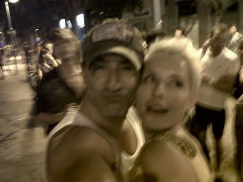 Y luego me encontré con JP SANTAMARÍA un fotógrafo catalán que viene a instalarse definitivamente a Madrid el próximo invierno. Y venga con el vodka limón y venga a ponerme verde porque JP es amigo de LADY CAGA (como lo oyen) y me dice que no lo entiende. Y mientras me llamaba "rancio de narices" nos hicimos esta foto con mi compañero de gimnasio...¿Total? Pues eso, que me dieron las cuatro de la mañana.