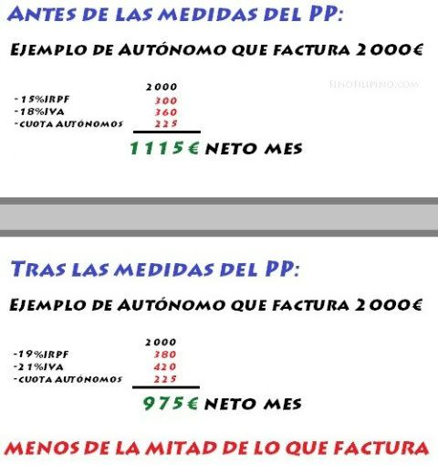 Efectivamente, ya era hora de que alguien lo dijera. Que parece que sólo están puteados los funcionarios y no: estamos puteados todos pero los autónomos lo tenemos más crudo pues no tenemos sueldo, ni pagas extras, ni bajas laborales, ni paro, por mucho que digan lo contrario. Es una vergüenza integral.
