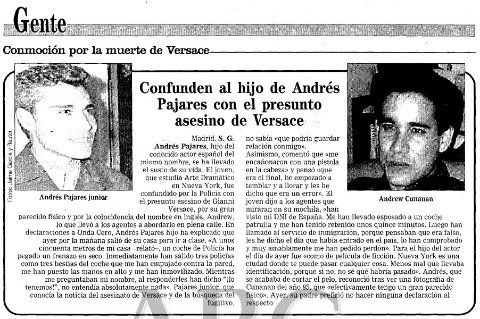 Pueden ustedes gritar del espanto por culpa de este flashback (si los guionistas de "Perdidos" lo hacen, yo también) o pueden ser víctimas de una risa incontrolable. El caso es que esta semana hace quince años que Andresito Pajares, de profesión aeromozo y bestia mediatica out of control, fue detenido en Estados Unidos porque la policía de allí pensaba que era el chapero que días antes había asesinado a Gianni Versace, el último genio de la moda.
