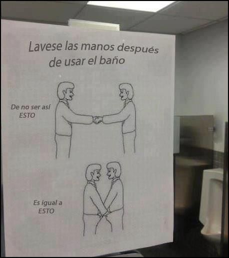Mi marido nada mas salir del baño lo primero que le pregunto es si se ha lavado las manos. Vamos que te toquen la cara despues de tocarse la morcilla.. No gracias. Guarros.