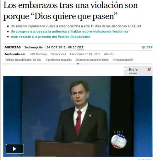 ¿Esto es normal? ¿De verdad un político puede decir algo así y quedarse tan ancho? Por descontado, tengo que contarles que semejante retrasado mental se llama Richard Mourdock y pertenece al partido conservador de Estados Unidos.