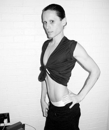 Me gusta JARED LETO porque suele escuchar con frecuencia temas de su banda 30 SECONDS TO MARS, pero sinceramente, a veces parece que se le va la olla. Miren como se ha quedado para trabajar en su nueva peli donde da vida a un transexual empeñado en ser Kate Moss con problemas. Sin comentarios.